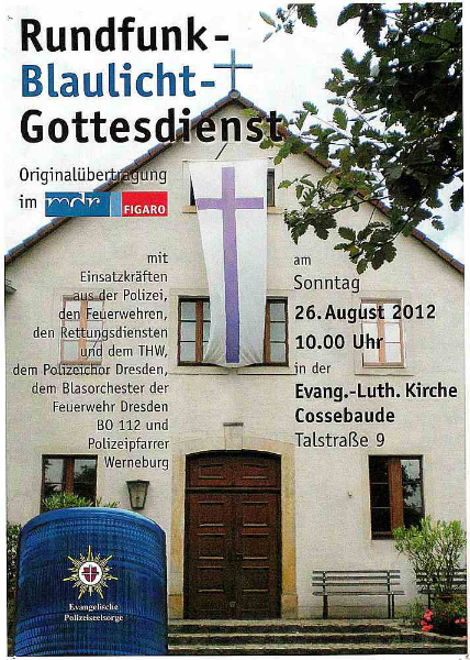 Dieser Satz war der Tenor einer Predigt des Polizeipfarrers Werneburg bei dem Rundfunk-Blaulicht-Gottesdienst am 26. August d. J. in der Kirche Dresden-Cossebaude.