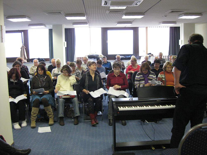 Als wir am Freitagabend im Best Western Hotel Stephanshöhe in Schellerau eincheckten, lag ein langes Proben-Wochenende vor uns. Bereits im Vorfeld dieser Chor-Reise wurden Wetten abgeschlossen, die immerhin dagegen hielten, dass wir das Pensum der vielen neuen Titel bis zum Weihnachtskonzert nicht mehr schaffen würden. Dass wir selbst hohe Ansprüche an unsere musikalische Leistung stellen, hat so nicht immer nur Vorteile, aber es kann seeeehr motivierend sein.
