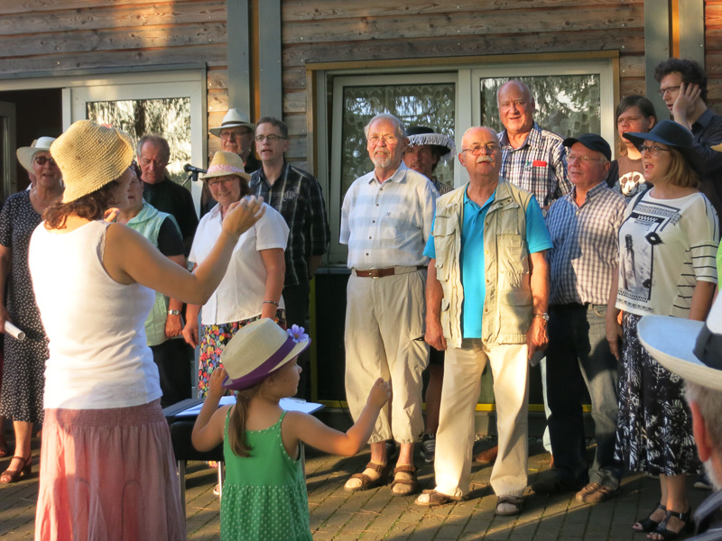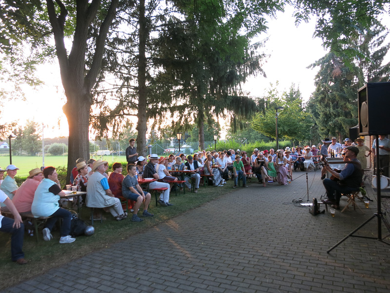 Unser förderndes Mitglied, Thomas Seifert, sorgte mit seiner Musikanlage wieder für angenehme Hintergrundmusik. Unter der Leitung unserer 2. Chorleiterin, Maja Seidel, gab es dann später auch von den anwesenden Sänger/Innen einige Lieder zu hören. Und sogar unser Chorleiter, Torsten Petzold, schaute dieses Jahr auf unserem Fest vorbei.