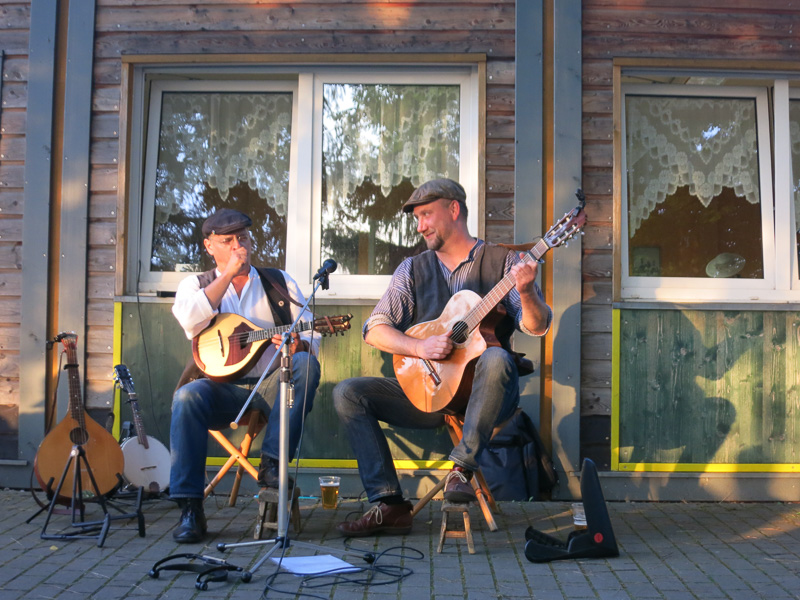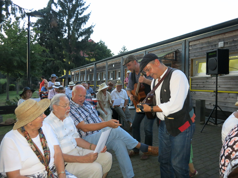 Gegen 20:00 Uhr gab es dann eine musikalische Überraschung – die Gruppe Unfolkkommen. Die beiden Dresdner Musiker begeisterten mit ihren sächsischen Volksliedern und Folksmusik von sittsam bis unsittlich alle Anwesenden. Und als Zugabe gab es dann mit Allen das gemeinsame Lied „Auf der Festung Königstein“ mit vielen neuen Strophen.