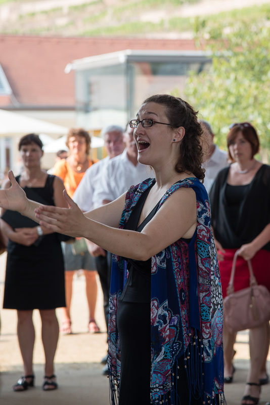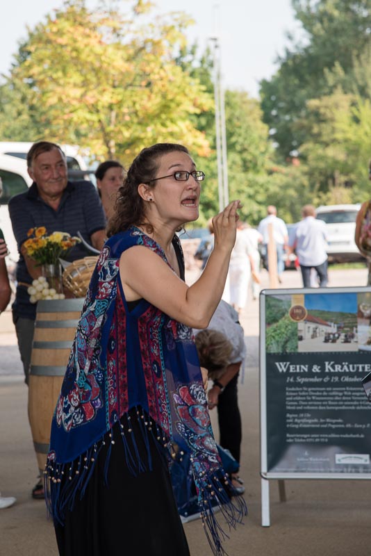 13:00 Uhr trafen wir uns bei hochsommerlichen Wetter-Bedingungen auf dem Sächsischen Staatsweingut in Radebeul. Trotz Bade-Wetters mit 30°C hatten sich bereits viele Besucher auf dem Gelände eingefunden und lauschten dem Chorgesang bei gekühltem Federweißen.