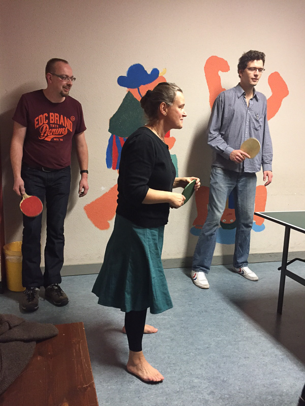 Als ich hier angefangen habe, musste ich noch eine Taufe über mich ergehen lassen. Ungezwungenes Zusammensein ist okay. Unterhaltung – gern auch mal privat – ist super. Disko muss nicht sein (private Meinung, smile), Kleindarsteller einzuladen für Programm war ganz schön (anderer Chor).