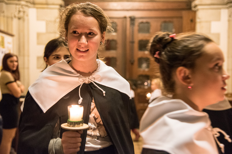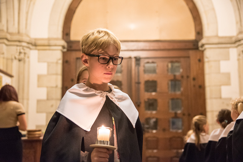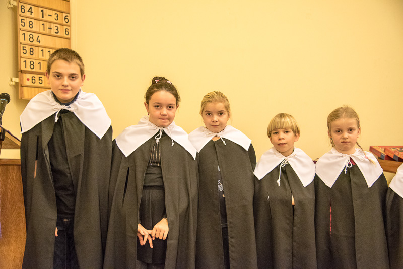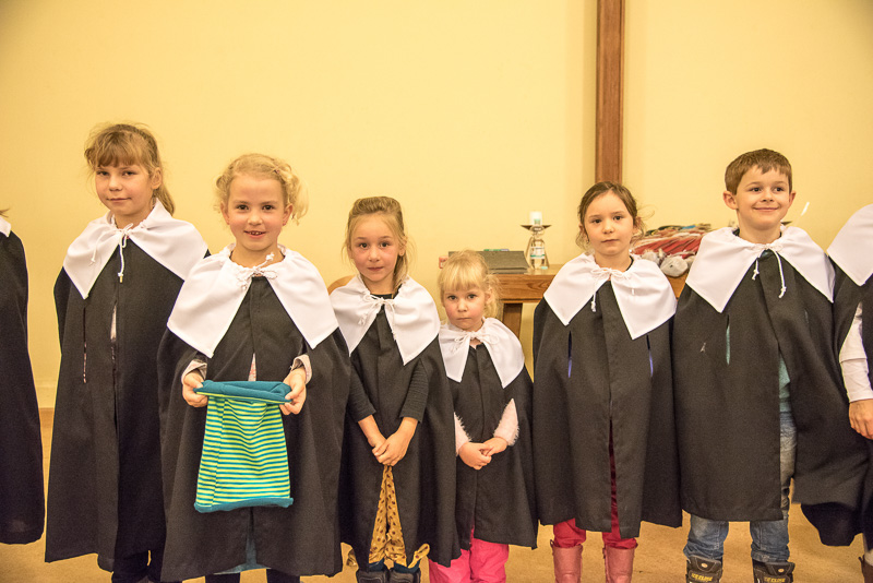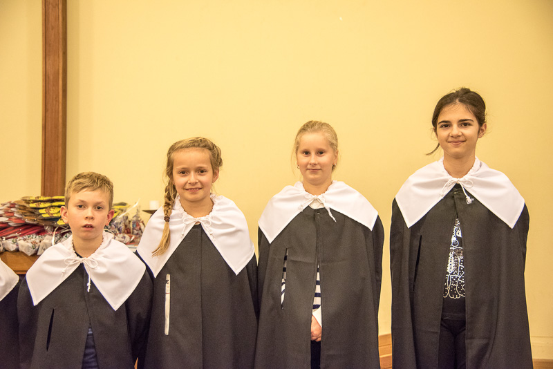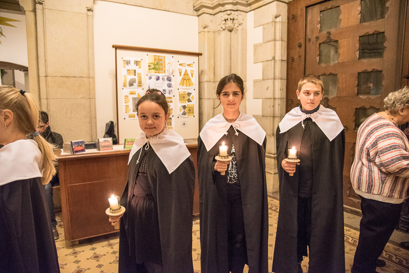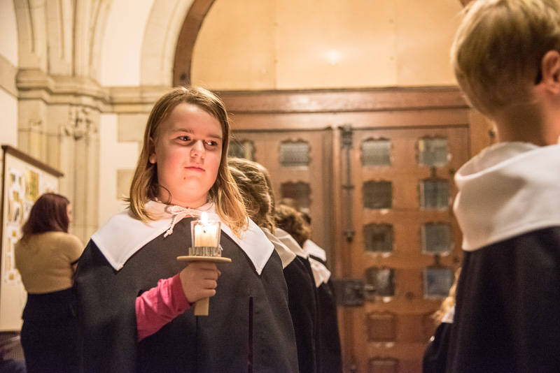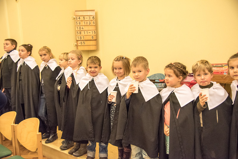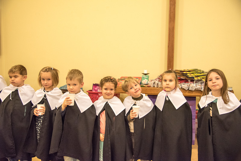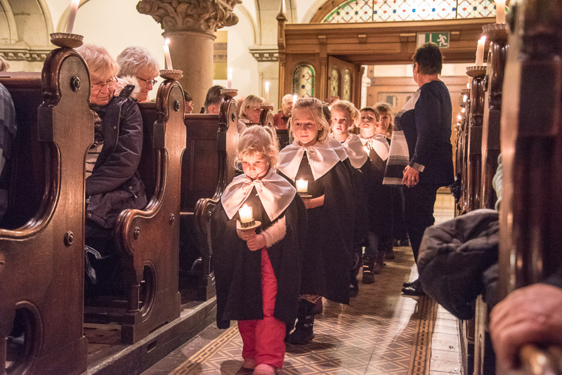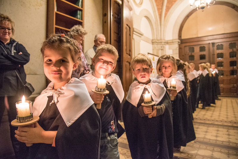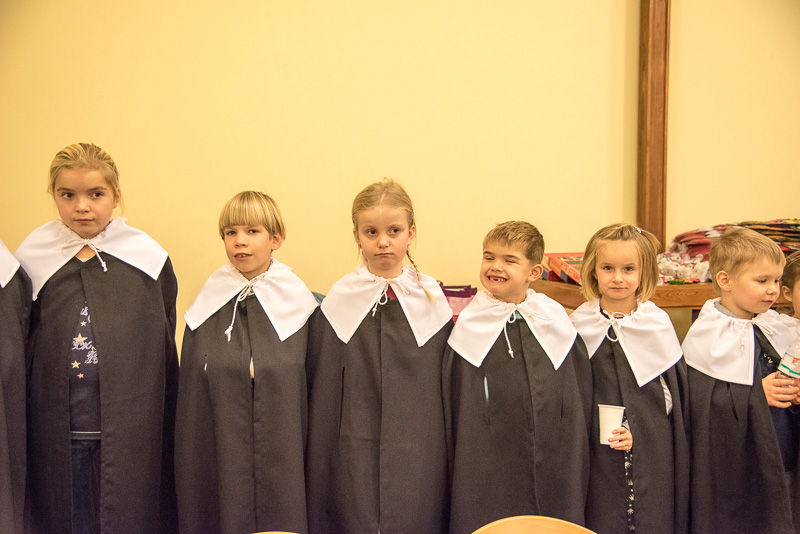 Zum Abschluss des Konzerts fanden sich alle Sänger und Musiker vor dem Altar ein und begleiteten den traditionellen Einmarsch der Kurrende, wechselweise unterstützt von der Orgel und den Blechbläsern und zuletzt zusammen mit den Stimmen der Besucher mit „Es ist ein Ros entsprungen“, „Stille Nacht“ und „O du fröhliche“.