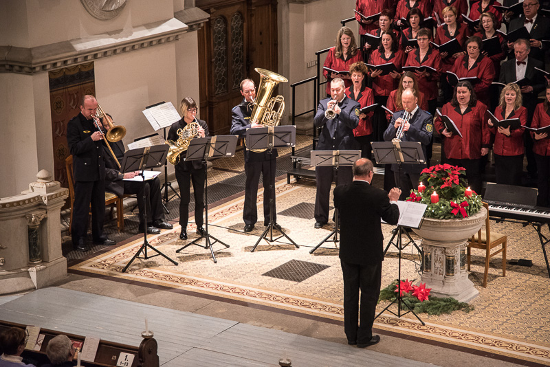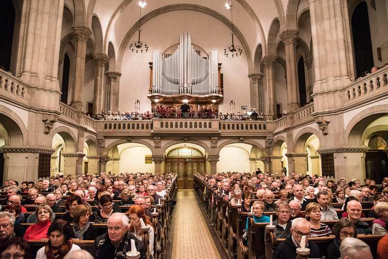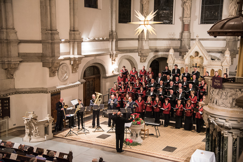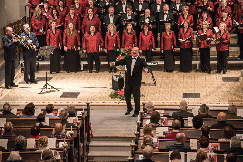 Der Polizeichor Dresden, geleitet von Torsten Petzold (musikalische Gesamtleitung) sowie von der 2. Chorleiterin Maja Seidel, trat als erster Chor auf. Standen unsere Konzerte 2015 im Zeichen „Lieder der Welt“, so konzentrierten wir uns diesmal ausschließlich auf deutsches Liedgut und dabei auf den geschichtlichen Ursprung des Weihnachtsfestes. Dabei wurden (einschließlich unseres zweiten Auftritts) Lieder von Komponisten aus den vergangenen 5 Jahrhunderten teils mit Begleitung der Orgel durch LKMD Markus Leidenberger, teils a capella vorgetragen.