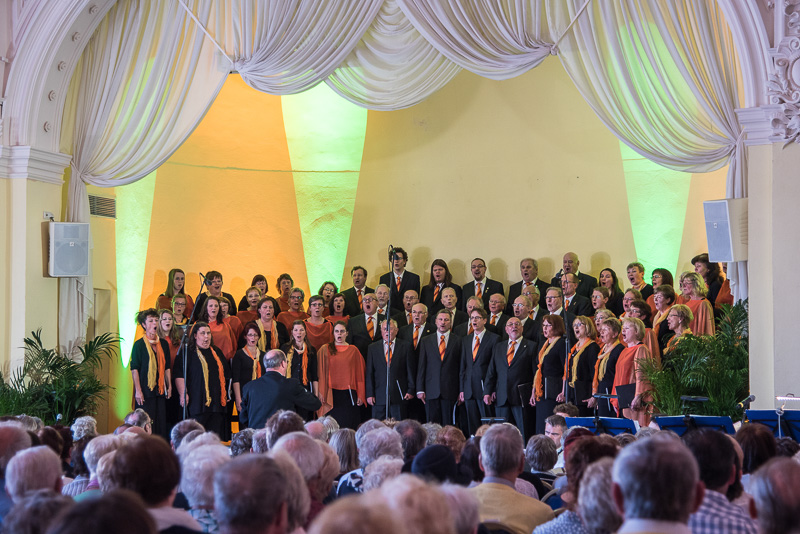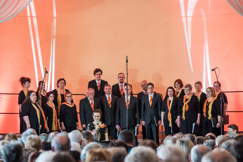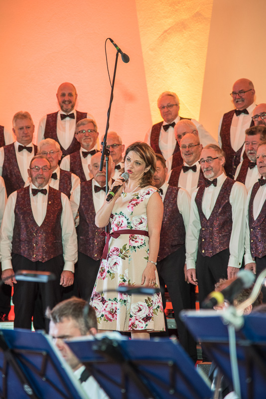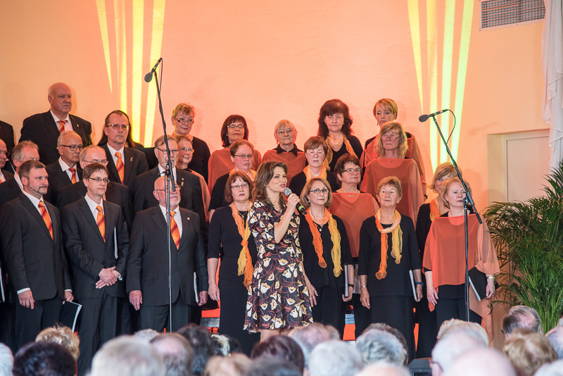 Der zweite Teil des Konzerts begann erneut mit einem schmissigen Stück der Blechbläser, gefolgt von Kathy Leen, die sich zum Ergötzen des Publikums darüber zu freuen schien, das ihr Mann sie verlassen will. Dazu passte hervorragend der erste Titel des nächsten Auftritts unserer Gäste aus Fulda: „Der Betrogene“. Der Männerchor mit seinen kräftigen Stimmen und auch die dargebotenen Lieder fanden erneut und berechtigt große Zustimmung.