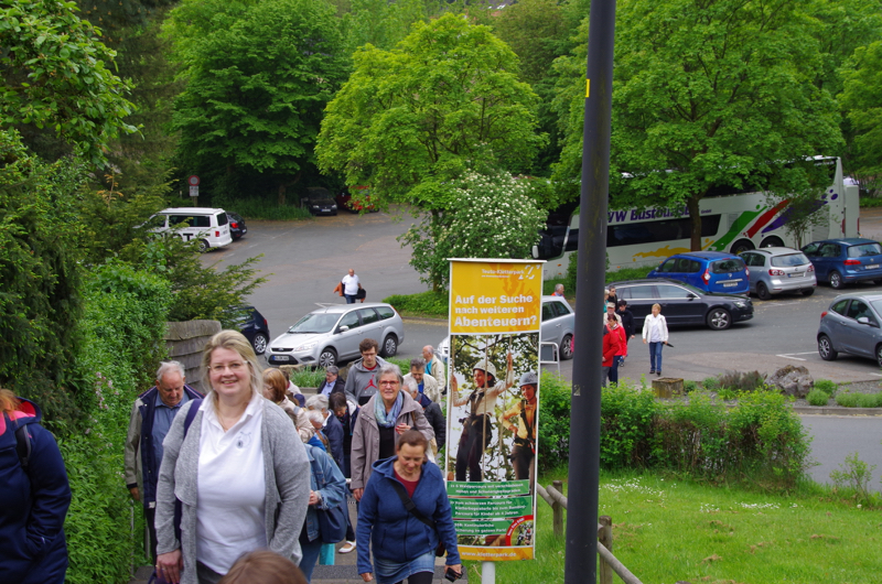 Als wir am Donnerstagmorgen fast pünktlich 8 Uhr Richtung Detmold starteten, waren wir trotz der frühen Stunde ganz gut gelaunt, denn wir wurden schon zu Beginn mit Kaffee und anderen kalten Getränken von unseren Bord-Bienchen verwöhnt. Ein nicht zu unterschätzender Luxus beim Reisen. Wer einmal einen Linien-Fernbus benutzt hat, weiß wovon ich schreibe. Gesungen wurde während der Fahrt noch nicht, aber viel erzählt und gelegentlich auch gemütlich geschlummert. So macht auch eine lange Reise Freude und die Zeit vergeht wie im Flug.