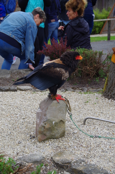 Unser erstes Ausflugsziel war die Adlerwarte Berlebeck. Noch bevor wir die großen Vögel bewundern konnten, kamen wir an einem Streichelzoo mit kleinen Zickleins und Alpakas vorbei. Die zutraulichen Zicken-Babys ließen sich auch gleich streicheln und es fiel richtig schwer, sich von ihnen loszureißen. Da wussten wir ja noch nicht, dass uns gleich ein attraktiver Vogel-Experte in die Geheimnisse der Greifvögel einweihen würde. Im Gegensatz zu anderen Vorträgen, die sicher einige von uns schon genießen durften, war dieser allerdings ganz anders; vorgetragen mit Humor, gespickt mit lustigen Flugvorführungen und uns als Publikum einbeziehend, wurde hier Expertenwissen auf kompetente Weise für alle Lerntypen vermittelt.