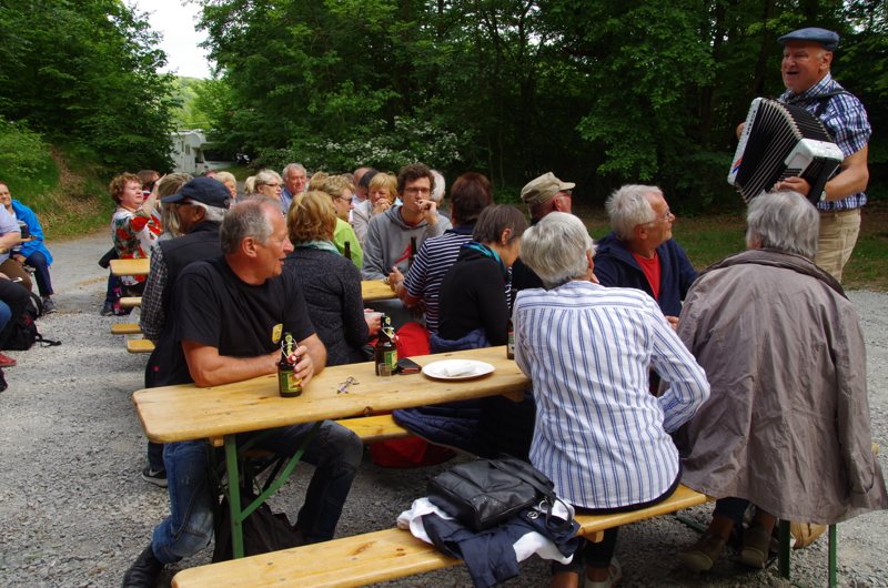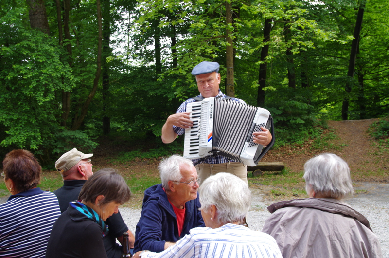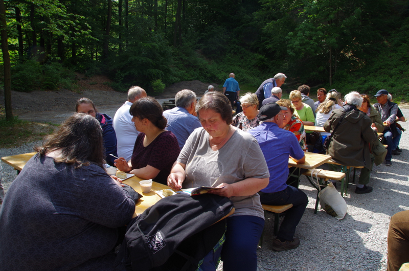 Am Nachmittag fand auf dem Grillplatz „Steinmetzhütte“ in Leopoldstal ein von unserem Gastgeber-Chor organisiertes Barbecue mit anschließendem Kaffee und Kuchen statt. Letzteres hatten die Ehefrauen des Männerchores organisiert, mit denen wir uns beim Austeilen auch austauschten. Die Stimmung war genauso strahlend wie die Sonne, die an diesem Tag alles gegeben hat. Natürlich sangen wir auch gemeinsam und ja, es gibt auch davon Videos und Fotos, darunter Spezialitäten, wie Hannes mit dem Akkordeon Shanties singend und die Chorleiterin des Detmolder Polizeichores Irina Stein uns alle als Polizeichor-Mix Detmold-Dresden dirigiert.