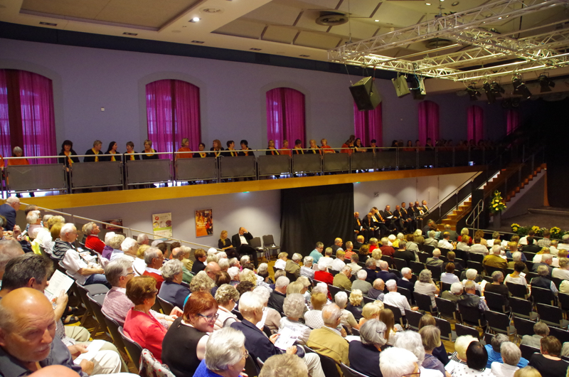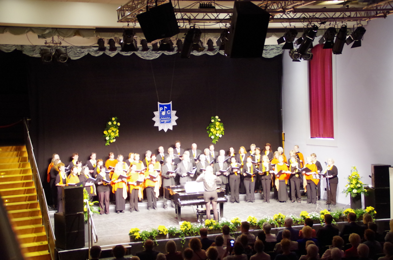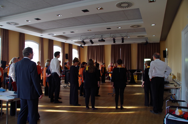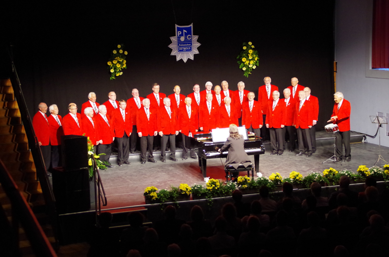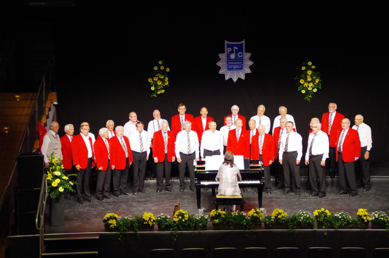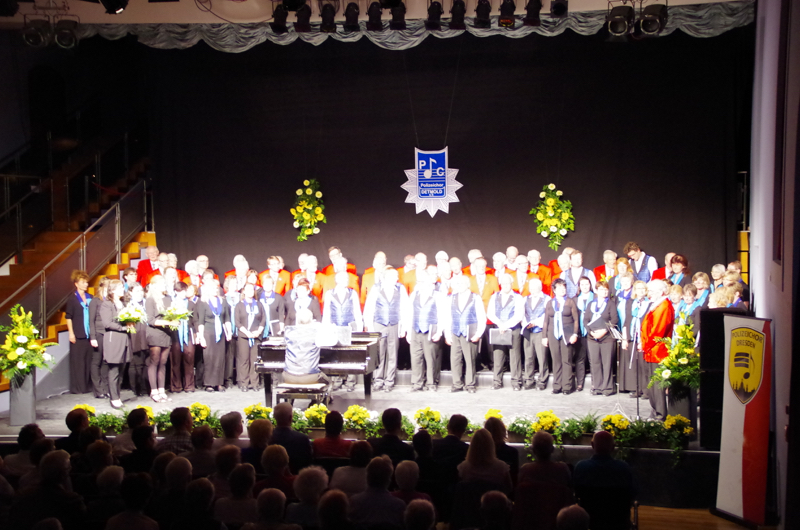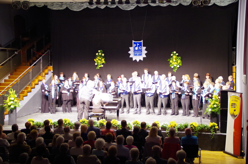 Am Nachmittag waren wir mit der Generalprobe für das traditionelle Pfingstkonzert des Polizeichores Detmold beschäftigt. Inzwischen waren auch unsere Chorleiter Torsten Petzold und Emelie Walther eingetroffen, und es gab ein paar kleine Korrekturen am vorgesehenen Programm. Ein Titel wurde gestrichen. Bei den meisten von uns stieg das Lampenfieber langsam, und so konnte der organisierte Imbiss mit Wiener Würstchen nur nebenbei gegessen werden. Vom lustigen Genießen wie am Grillnachmittag zuvor war keine Spur. Anlässlich des Pfingstkonzertes hielt sogar der Bürgermeister, Herr Rainer Heller, eine kleine Begrüßungsrede. Das könnte mir glatt für uns auch gefallen, das werde ich mal als Anregung mitnehmen 😉.Da immer wieder langanhaltender Applaus ertönte und am Ende sogar so lange ausgehalten wurde, bis wir eine kleine Zugabe sangen, haben wir das Konzert als erfolgreich empfunden.