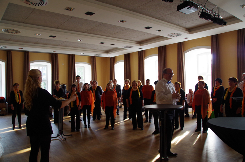 In Detmold wurden wir nicht nur vom Wellness-Hotel-Personal sondern auch eine Stunde nach Ankunft von den Sängern des Polizeichores Detmold, deren Ehefrauen und der Chorleiterin Irina Stein erwartet. Zur Begrüßung wurden gleich drei Lieder von der Bühne des Hotel-Ballsaals geschmettert und anschließend fand ein erstes gemütliches Beisammensein statt. Nur für ein paar Minuten geplant… Aber wir sangen halt auch noch drei Titel, was ohne Chorleiter eher Seltenheitswert hat. Nach dem einen oder anderen Wein gab es einen Auszug aus der Operette „Der fliegende Rittmeister“, den „Fliegermarsch“ gemeinsam, der sich super sang und nach Aussage der Serviererin auch Klasse anhörte. Ok, ob das jetzt auftrittsreif gewesen ist, sei mal dahingestellt, aber der Spaß am gemeinsamen Singen brachte gleich eine Vertrautheit mit sich, die über alles Mögliche plaudern lies. So erfuhr ich vom Schwarzen Gold der Region, dem Moor mit schwefelhaltigen Quellen. Derartige Besonderheiten aus unserer „Mutter Erde“ kenne ich schon von einigen Besuchen in Island. Mein Interesse war geweckt und mittlerweile wurde ich auch gut mit Infomaterial versorgt. Lieben Dank dafür an Wolfgang Müller vom Polizeichor Detmold. Wer also mehr über das schwarze Gold und die diesbezüglichen Pläne in der Region wissen möchte, kann mich jederzeit darauf ansprechen.