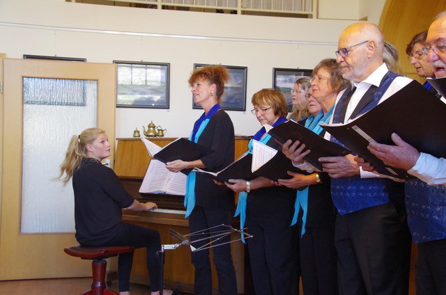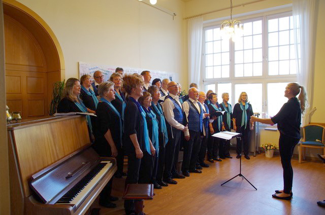 Am frühen Nachmittag, gegen 15.30 Uhr trafen wir uns zum Einsingen in den Räumen der Volkssolidarität Dresden. Wo wir Mitte der 80er Jahre Schlange standen, um in einer der wenigen damaligen Diskotheken in Dresden mit Freunden zu feiern, warteten heute die Senioren der Volkssolidarität auf uns. Emelie Walther hatte als Dirigentin die musikalisch-künstlerische Leitung und unsere Katl (Katrin Fetter) führte uns mit Charme und Humor durch das Programm.