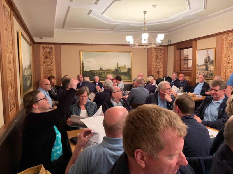 Das Wochenende hatte so gut begonnen, als der Vorstand in freudiger Erwartung am Freitagabend unsere lieben Gäste aus Ahaus mit der sächsischen Spezialität „Fettbemmen“ und einem Doppelkorn begrüßte. Traditionell hatten sich Katrin Fetter und Lothar Günther dazu als Schokoladenmädchen und August der Starke verkleidet. Abgerundet wurde der Abend durch ein mediterranes Menü beim Griechen „Mythos Palace“ in der Nachbarschaft des Hotels unserer Gäste.