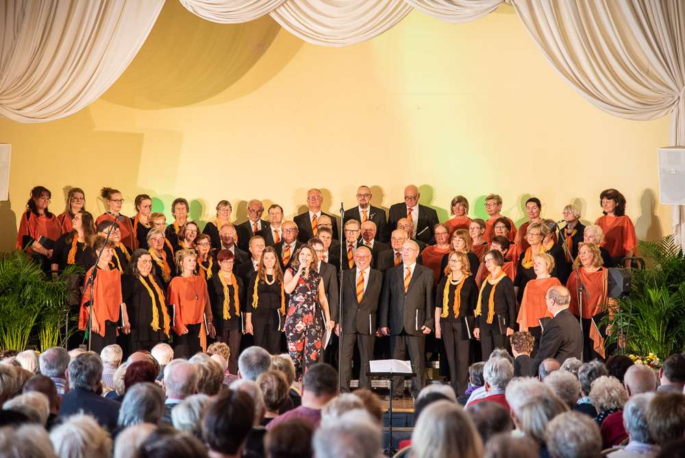 Eine weitere Attraktion des Frühjahrskonzertes war unsere temperamentvolle Moderatorin Kathy Leen, welche mit Humor und fantastischer Stimme singend durch unser Programm führte. Im Duett mit Startenor Marcus Günzel – von der Staatsoperette Dresden – sang sie „Ich hab so viele Wünsche im Geheimen, die sollen einmal in Erfüllung gehen…“ und er antwortete „Ich werde jede Nacht von Ihnen träumen und warten auf ein Wiedersehen…“. Das war der Moment des Konzertes, bei dem nicht nur beim Publikum sondern auch bei uns Chormitgliedern Gänsehautfeeling ausgelöst wurde.