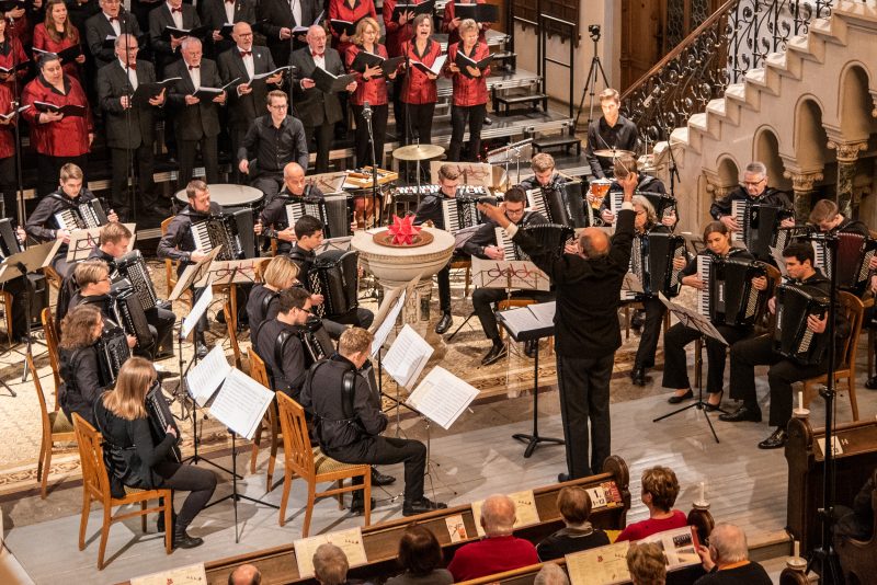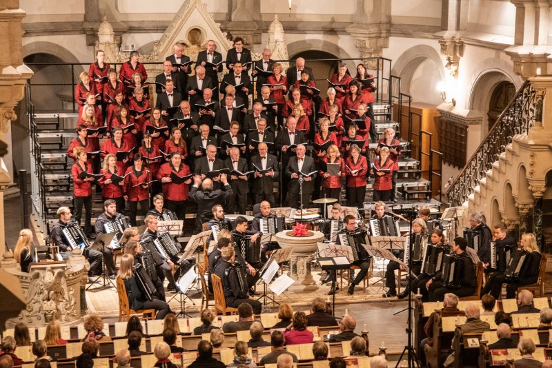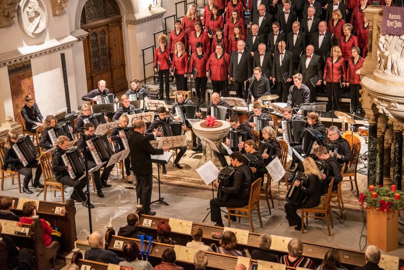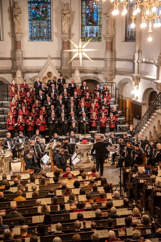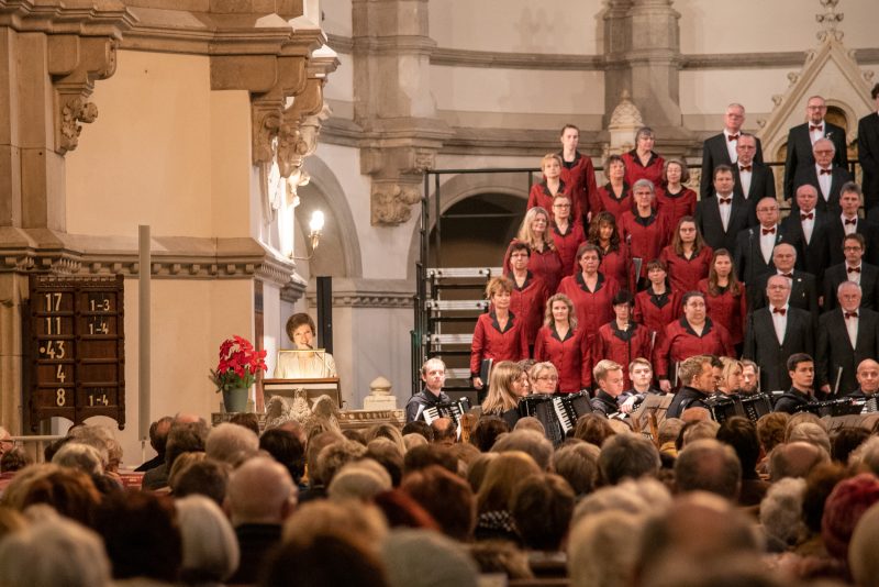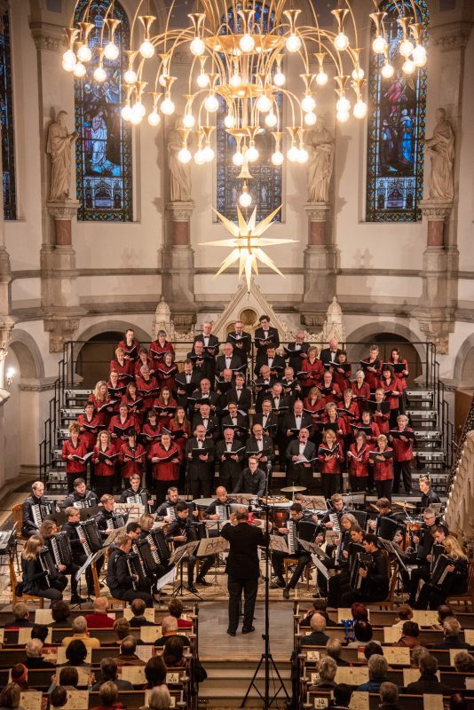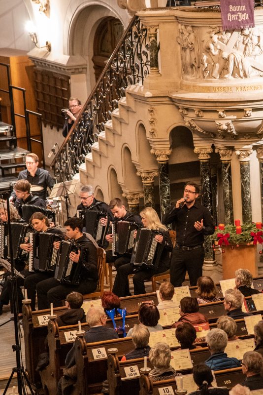 Besonderer Höhepunkt war das „Jauchzet, frohlocket“ aus dem Weihnachtsoratorium, Kantate I, Nr. 1 von Johann Sebastian Bach, welches der Chor wiederum zusammen mit dem Akkordeonorchester aufführte. Das anspruchsvolle Stück machte nicht nur die Qualität des Chores deutlich, sondern zeigte auch das ganze Herzblut, welches die Sänger stets in jedes Konzert stecken. So sollte es auch nicht verwundern, dass der Applaus des Publikums bei diesem Stück besonders großzügig ausfiel.