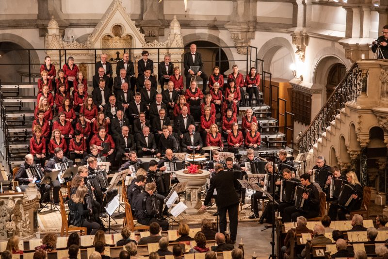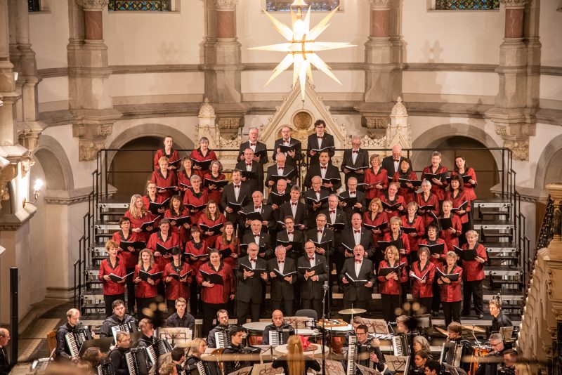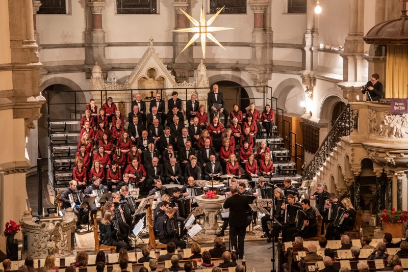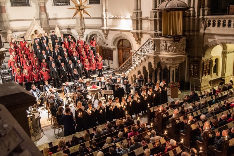 Einer langen Tradition folgend, öffnete die Martin-Luther-Kirche in der Dresdner Neustadt auch in diesem Jahr am 3. Advent ihre Tore für die Weihnachtskonzerte des Polizeichores Dresden. Mit einem abwechslungsreichen Programm lud dieser Jung und Alt zu einer kleinen Auszeit der manchmal hektischen Adventszeit ein. Unterstützt wurde er dabei vom Akkordeonorchester der Musikschule der Hofer Symphoniker.