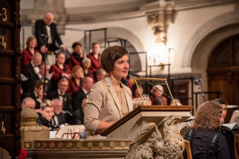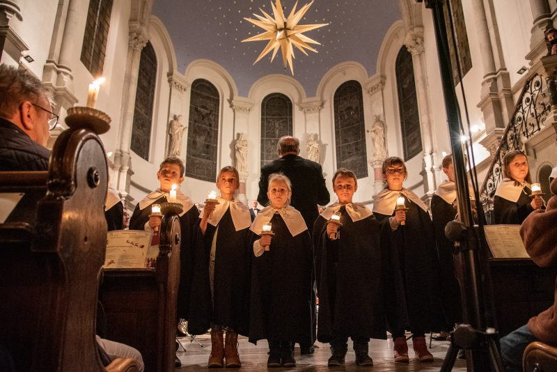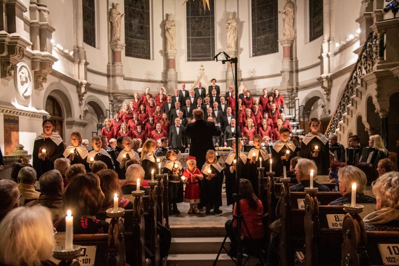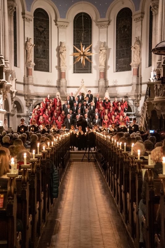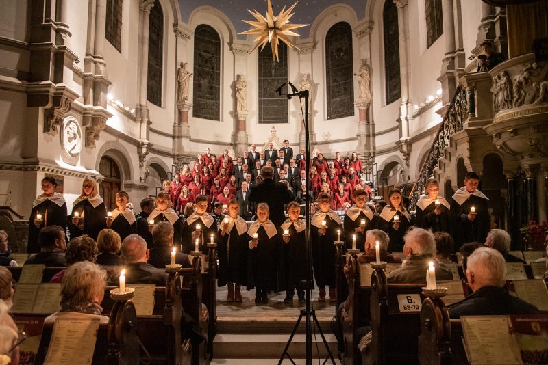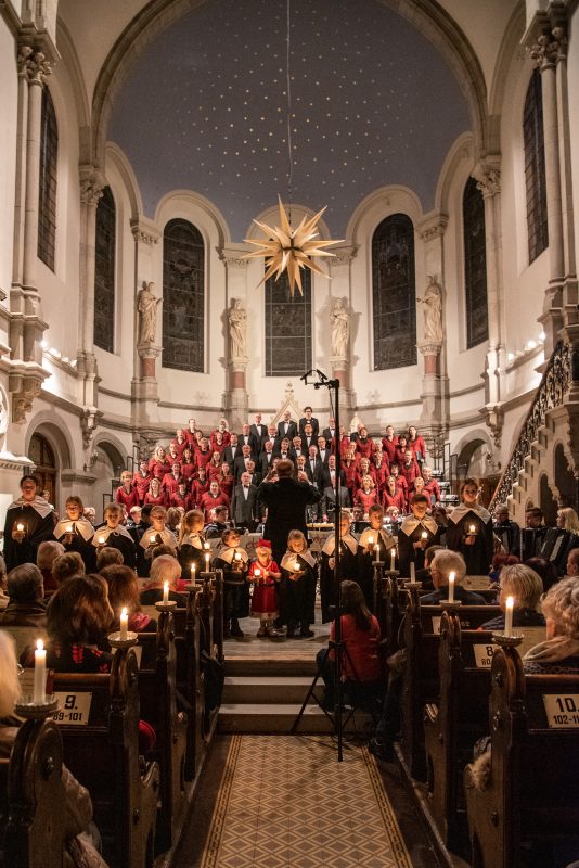 Andächtige Stille herrschte dagegen beim letzten Teil des Konzerts. Angefangen mit Leonard Cohens „Hallelujah“ und dem Entzünden der Kerzen, über den Einzug der Kurrendekinder zu „Es ist ein Ros’ entsprungen“ spürte man die Ruhe und Besinnlichkeit von Weihnachten, die bei „Stille Nacht, Heilige Nacht“ noch gesteigert wurde. „Oh du fröhliche“ bildete traditionsgemäß den Abschluss des Konzertes und regte auch den ein oder anderen Zuhörer dazu an, mit einzustimmen.