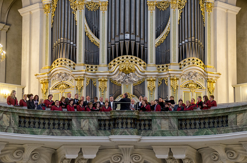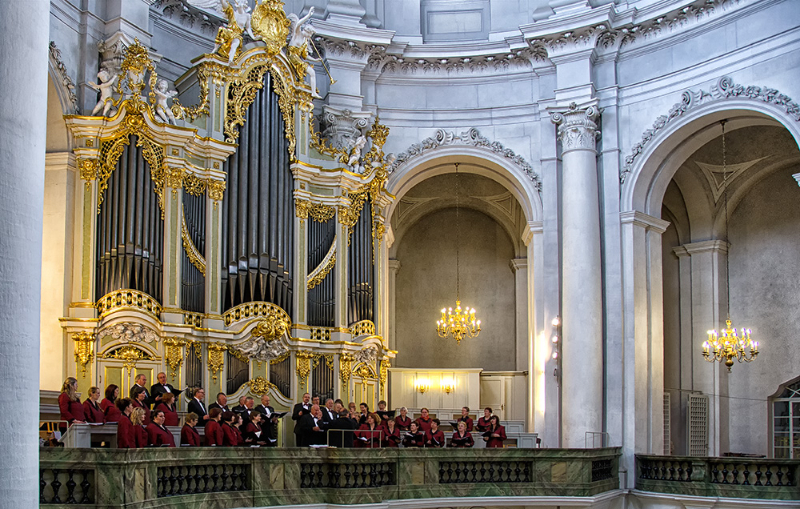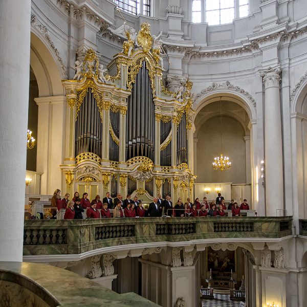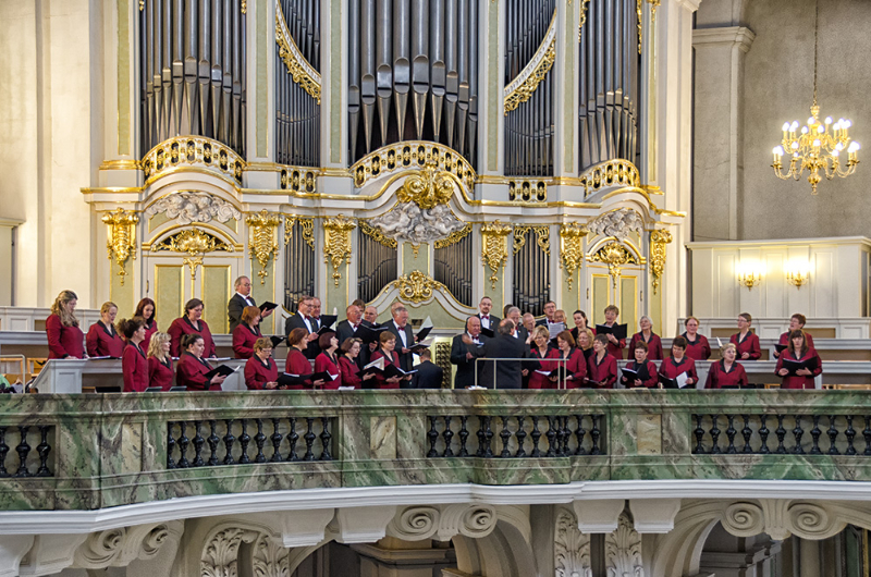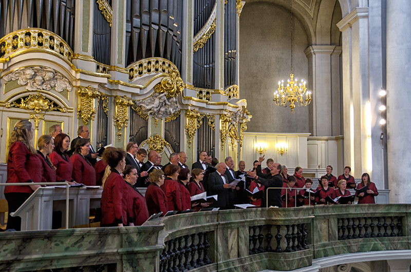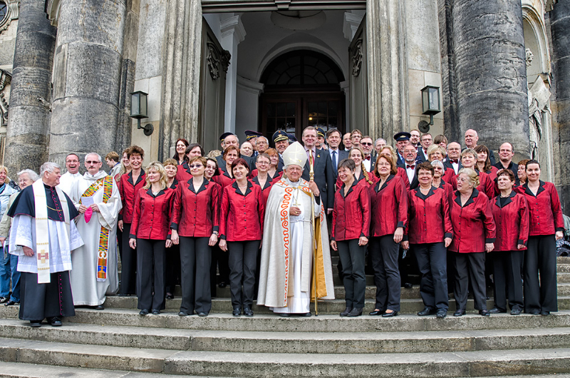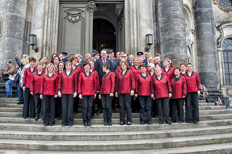 Während der gemeinsamen musikalischen Gestaltung des Blaulichtgottesdienstes in Cossebaude bei Dresden mit dem Feuerwehrblasorchester BO 112 erhielt unser Chor eine Einladung zur Teilnahme am 4. Florianstag der Dresdener Feuerwehr im Jahr 2013. Da wussten wir zwar, dass der Heilige Florian der Schutzpatron der Feuerwehr ist, aber nichts davon, dass an diesem 4. Mai außerdem der 150. Gründungstag der Dresdner Feuerwehr gefeiert wird. Die Einladung erfüllte uns zugleich deshalb mit Freude, weil wir dabei erstmalig in Sachsens größter Kirche auftreten würden, in der ehemaligen Katholischen Hofkirche Dresden, seit 1980 Kathedrale Ss. Trinitatis.
