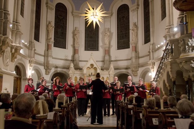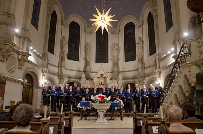 Während unseres Abgangs hatte sich unser Gastchor vor dem Altar aufgestellt und stellte sein Können mit 3 Liedern, darunter einem Weihnachtsmedley, unter Beweis.
