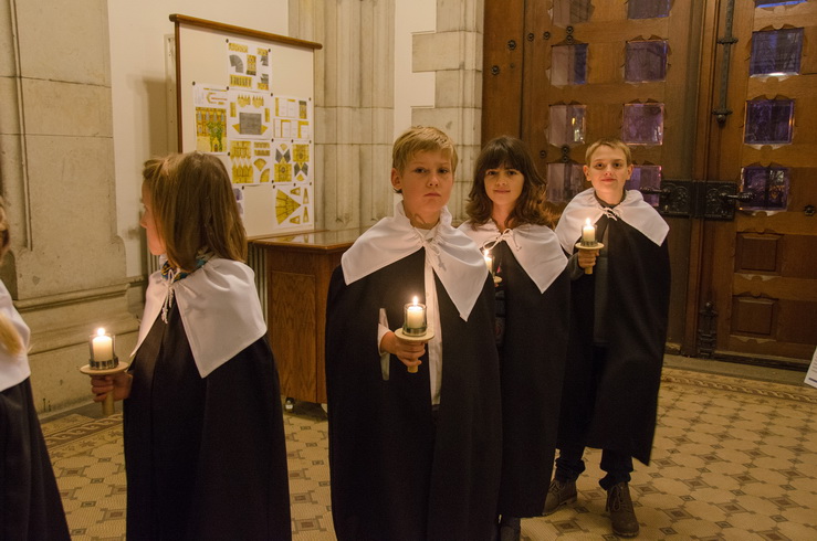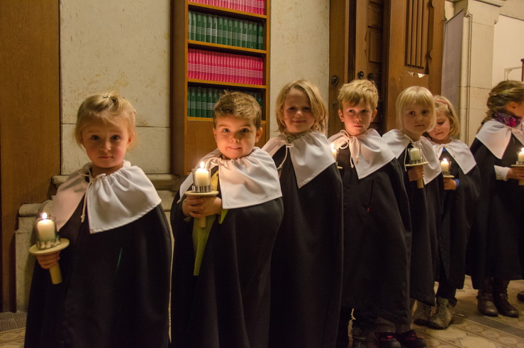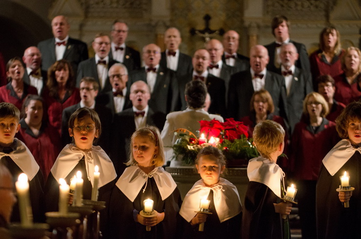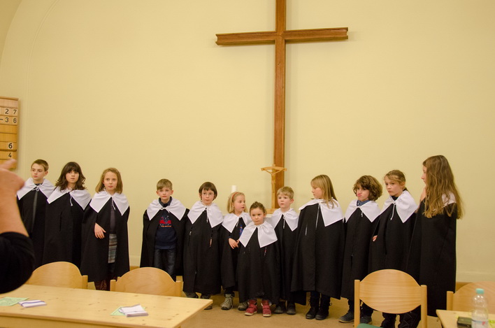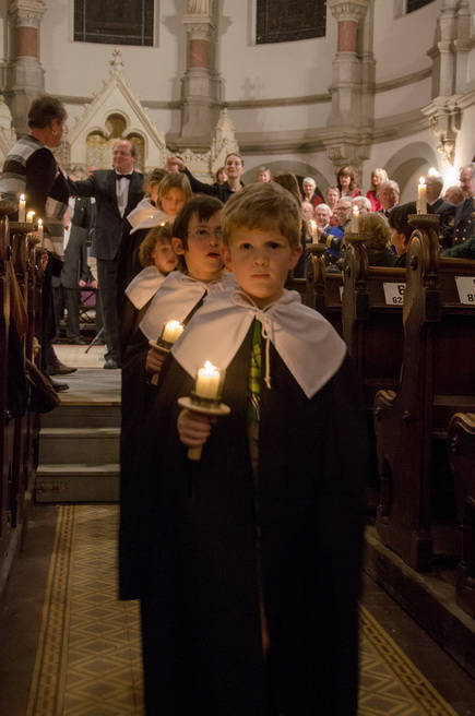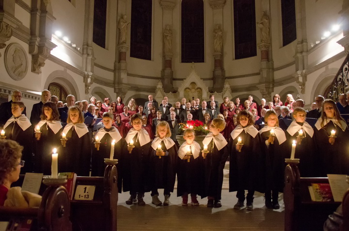 Zum Abschluss unseres Konzertes fanden sich alle Beteiligten vor dem Altar ein, verfolgten den Einzug der Kurrende beim Orgelspiel und sangen gemeinsam „Es ist ein Ros entsprungen“, „Stille Nacht“ und „O du fröhliche“.