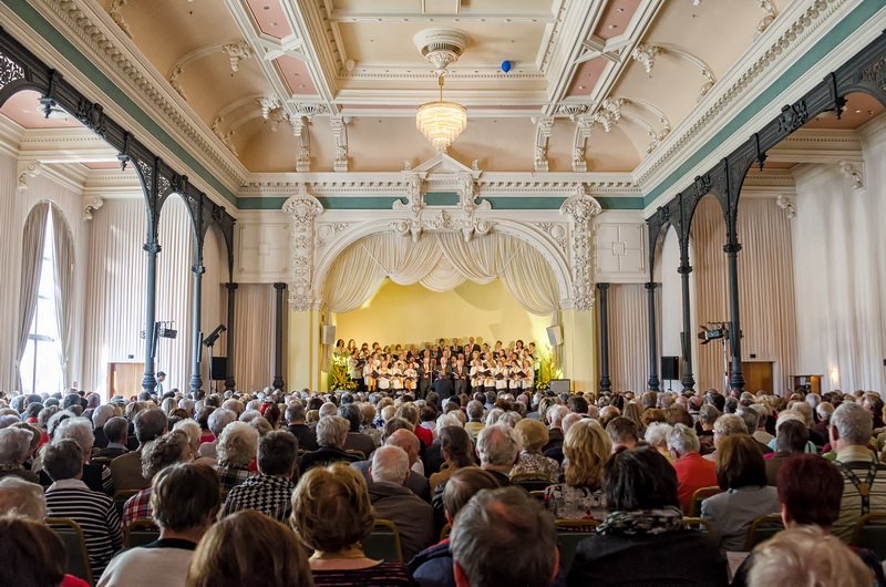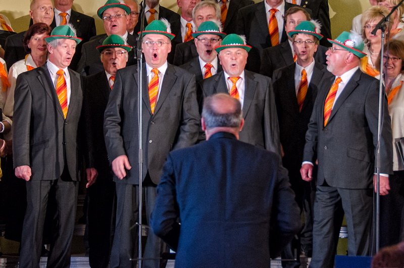 Ganz richtig passte der Text des Eröffnungstitels des Frühlingskonzertes des Polizeichores Dresden zwar nicht, denn der Schnee war schon lange geschmolzen und bis zum Mai fehlten noch 11 Tage, aber er bot dem Publikum tatsächlich etwas Neues: Aus drei Richtungen betraten die Sängerinnen und Sänger nach der temperamentvollen Einleitung des Konzertes durch die Dixielandformation des Polizeiorchesters Sachsen den Ballsaal des Quality Hotel Plaza in Dresden und hielten auf dem Weg zur Bühne inne, um, getrennt nach Sopranisten, Altisten und Männerstimmen, den oben genannten Kanon an- und damit das Publikum auf ein abwechslungsreiches Konzert einzustimmen.