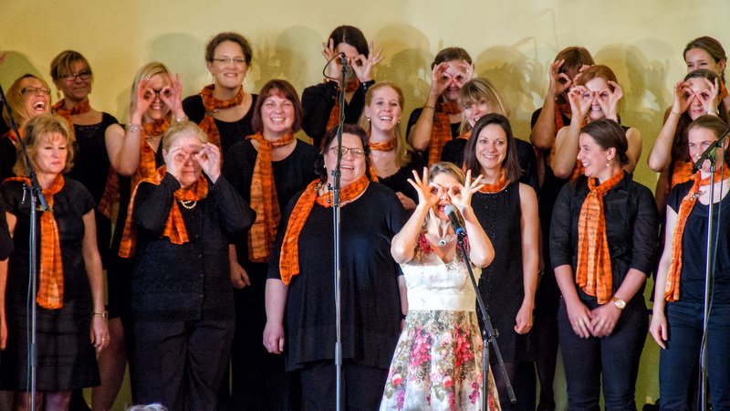 Bunt ging es weiter mit Darbietungen unserer Musici, nochmals unseres Frauen- und des Gesamtchores sowie der Dixielandformation unter der Leitung von Thomas Quandt, bis Kathy Leen nach der lustigen „sächsischen Hymne“ unseren Gastchor vorstellte und ankündigte, den mit Spannung erwarteten Frauenchor der Polizei München.