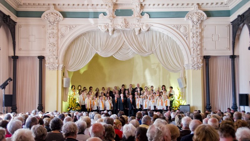 Robert Stolz war der Komponist der nächsten Lieder, mit denen unser Gesamtchor von weißen Orchideen, Kornblumen und Kaktusblüte und unser Frauenchor von Veilchen erzählten.