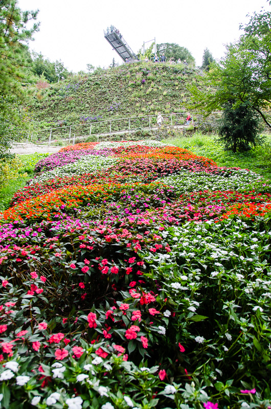 An dieser Stelle solidarische Grüße an meine Schwester im Geiste in Bus 1 mit dem gleichen Problem und den zwei Tüten, ab morgen drei 😉In Trautmannsdorf angekommen begaben wir uns gleich auf die Panoramawege des botanischen Gartens und standen einer Vielfalt von exotischen Pflanzen gegenüber; duftende Kräuter wechselten sich ab mit riesigen Kakteen und der Wasserlandschaft mit romantischen Seerosen. Bunte Kois in den Teichen rundeten das bezaubernde Bild von Flora und Fauna ab. Selbstverständlich gab es auch einheimische Pflanzen zu bestaunen, für mich die fantastischen rosa Rosen, die ihren lieblichen Duft so lockend verströmten, dass nicht einmal Hannes widerstehen konnte, siehe Foto. So sieht man den Chef mal ganz anderes; er sagt es durch die Rose.