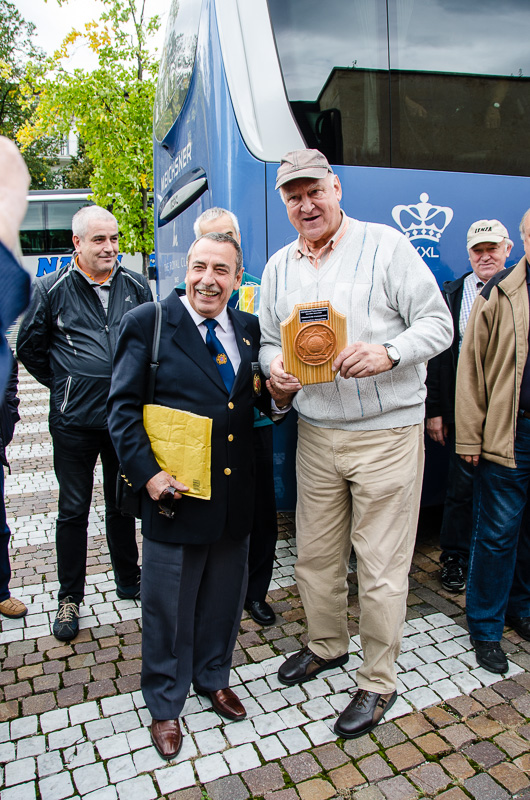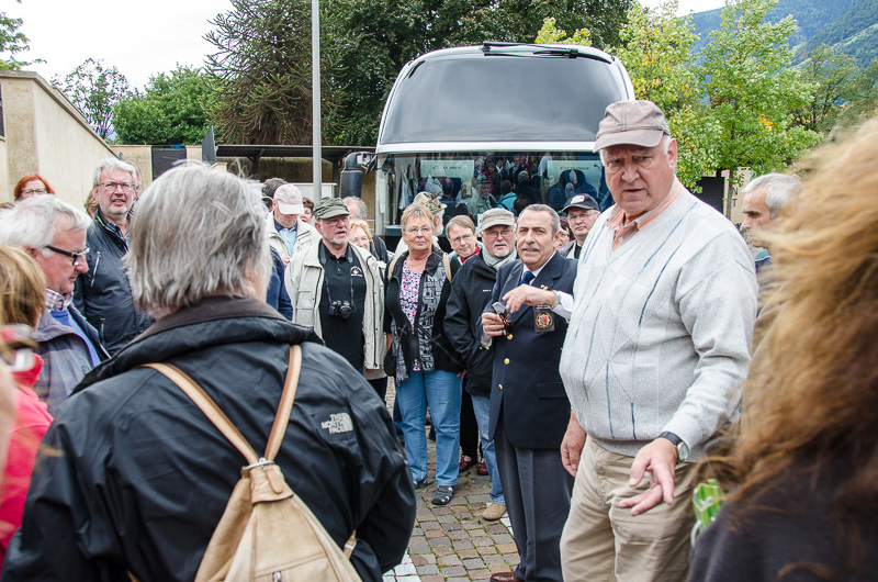 Von Trautmannsdorf nach Meran wurden wir eskortiert und begleitet von der italienischen Polizei, inklusive Blaulicht. Auf dem Zielparkplatz in Meran wurden nicht nur herzliche Begrüßungen ausgetauscht sondern auch Gast-Geschenke übergeben.