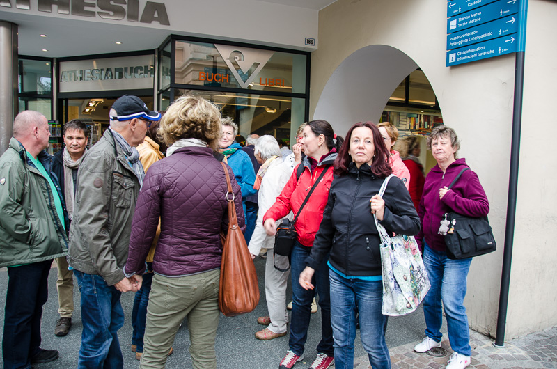 Der Nachmittag in Meran konnte individuell genossen werden. Einige nutzen den Stadtbummel zum shoppen, andere wiederum besuchten die Therme (nein, nicht nur weil es da WLAN gab), wieder andere fuhren mit der Seilbahn auf den Berg, um Meran aus der Vogelperspektive zu sehen.