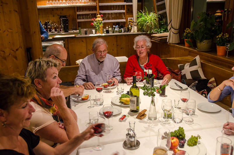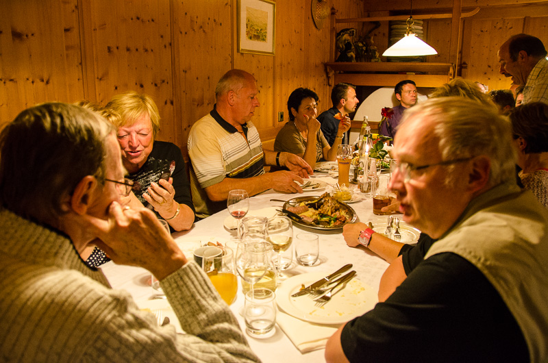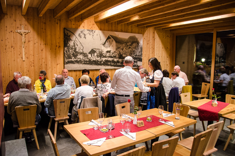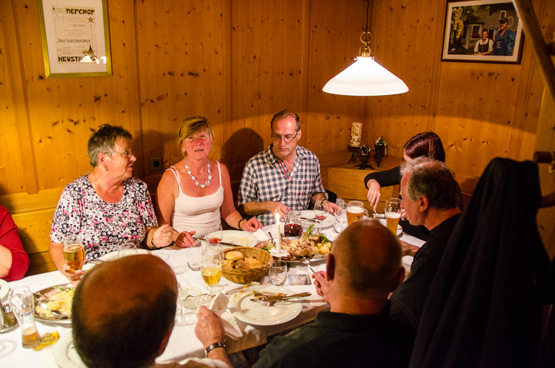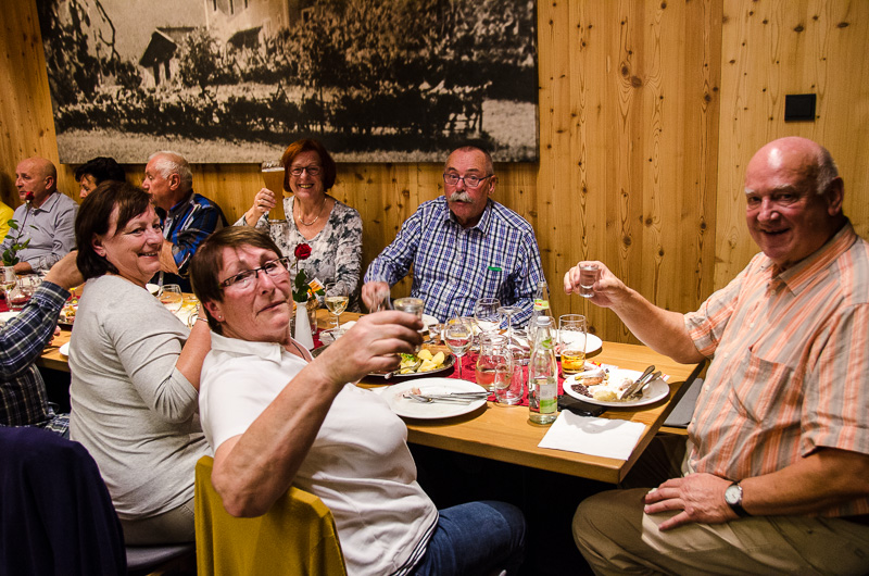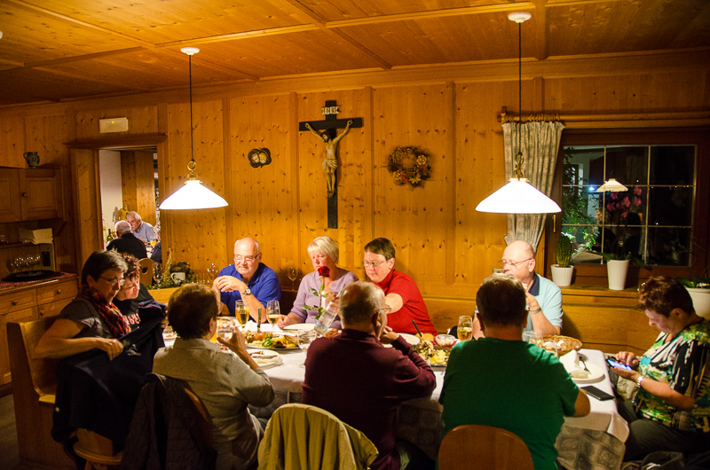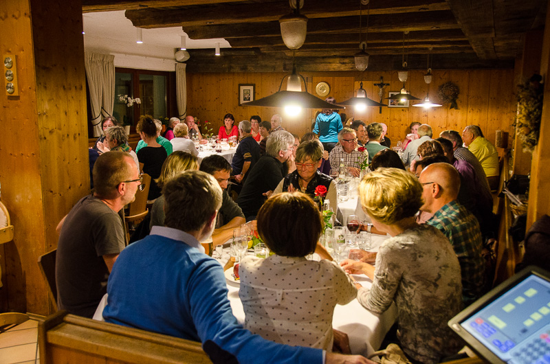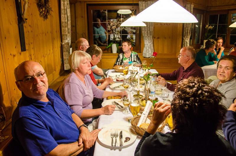 Nach der ausgiebigen Zeit für das Bummeln, Flanieren der Shoppen in Meran ging es dann mit den Bussen nach Neustift. Dort waren wir dann in der Gaststätte „Käfererhof“ bei einem zünftigen Törggelenabend. Die Stimmung da war sehr ausgelassen und fröhlich, aber leider mussten wir vom Bus 2 wieder etwas eher starten, unser Bus musste uns ja noch zurück in die Berge nach Latzfons bringen.