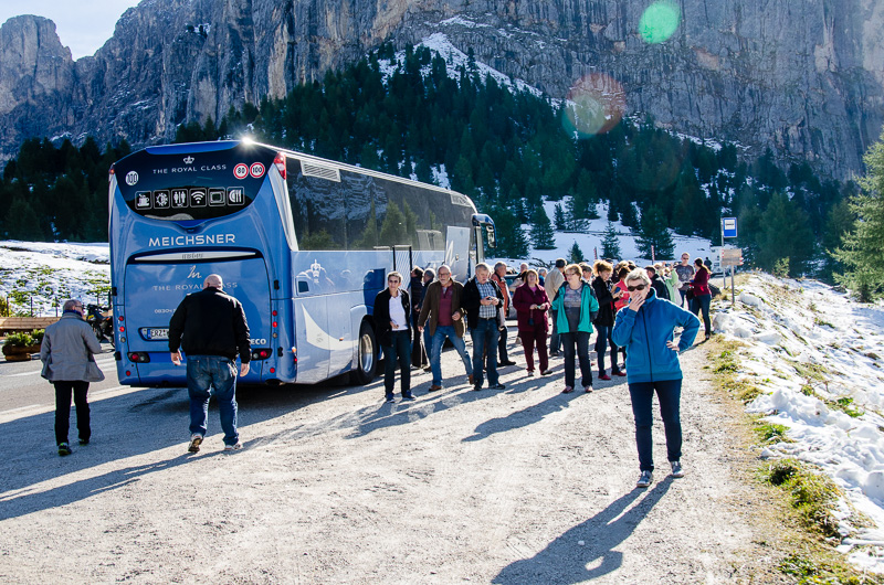 Heute hatten wir Großes vor: es stand die lang erwartete Dolomiten-Rundfahrt an. Pünktlich 8:30 Uhr standen wir ( in Latzfons) vorm Bus und haben unserem heutigen Geburtstagskind Peter Grund ein Ständchen gebracht. Dann hieß es „Einsteigen“ und es ging talwärts in Richtung Hotel Klostersepp um unseren Bus 1 einzusammeln. Hier stiegen auch unsere Begleitung vom Neustifter Männerchor zu: Luis und Stefan.
