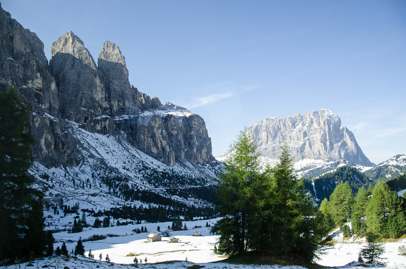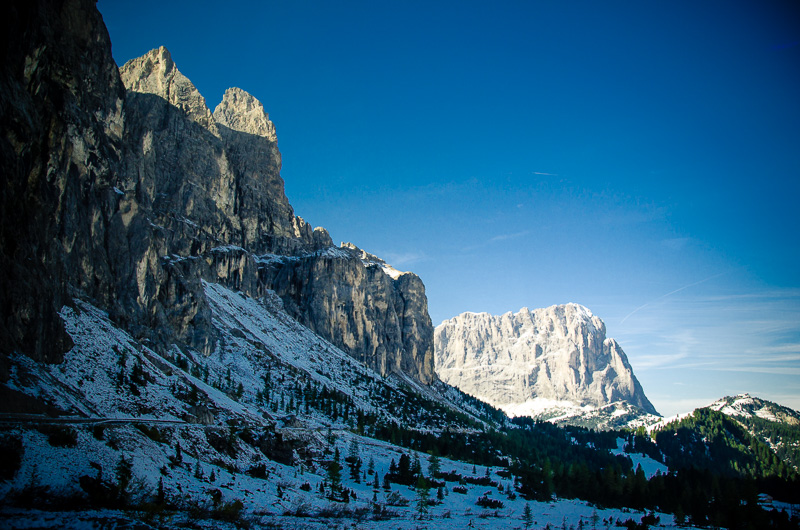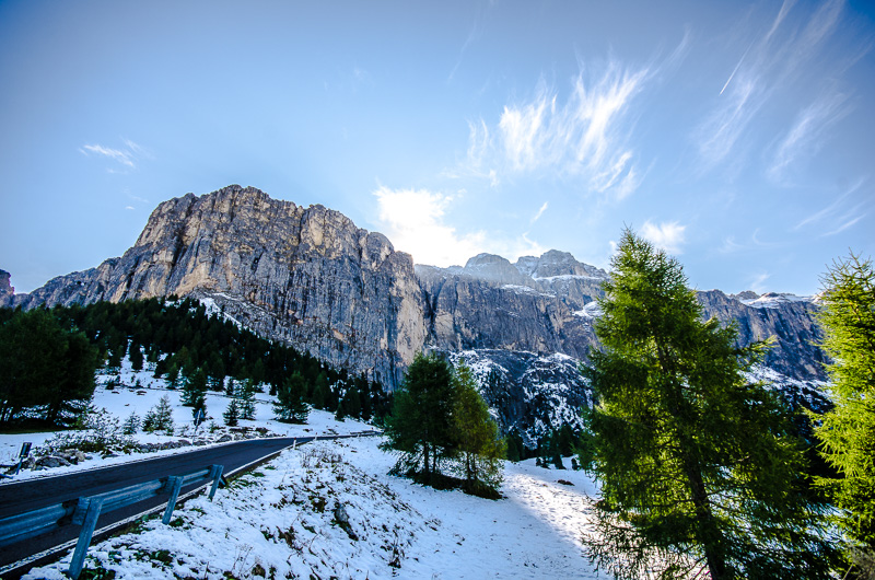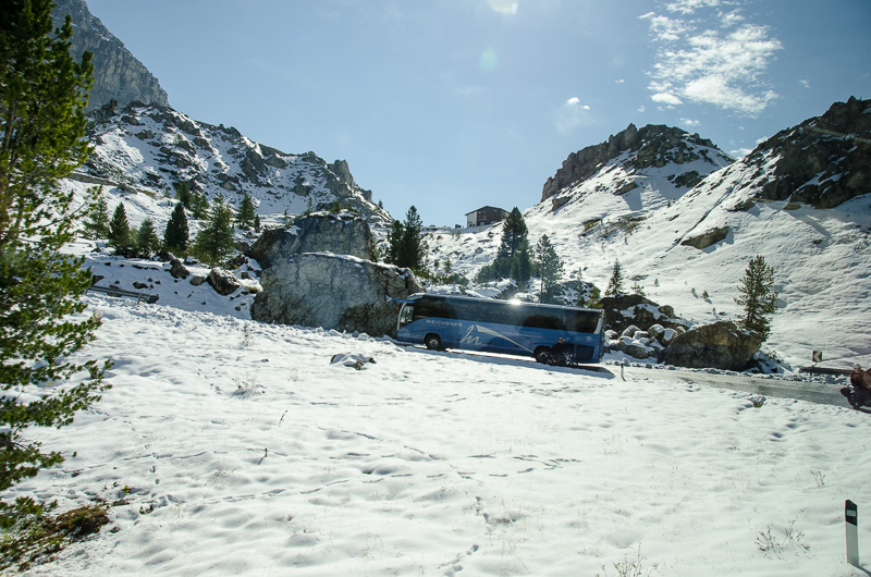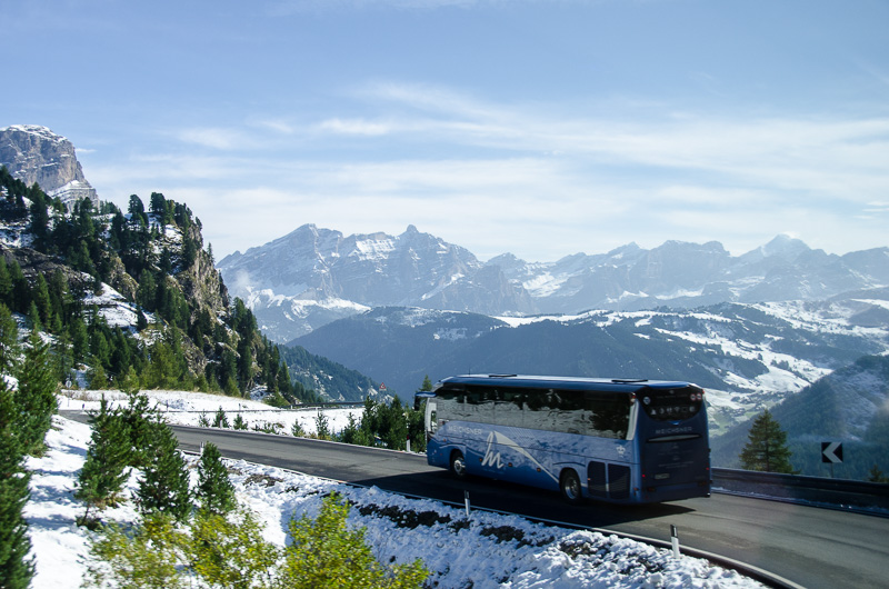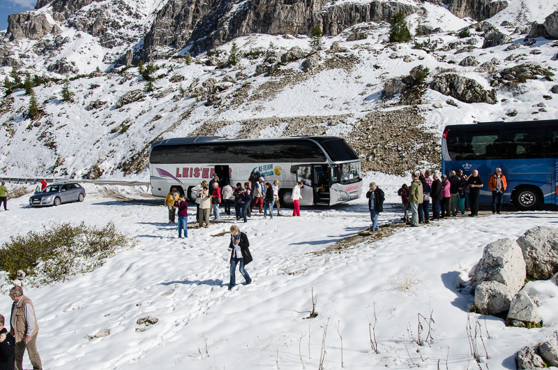 Dann ging es durch das Grödnertal in die Dolomiten. Hier erwartete uns eine wunderschöne Landschaft mit phantastischen Bergpanoramen. Auch im Schnee hatten wir unsern Spaß bei zwei kurzen Pausen, bei der zweiten sogar mit Gletscherblick.