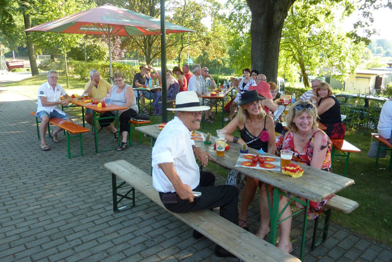 Wieder einmal durften wir das Gelände des Vereines Kanusport Dresden e.V. mit seinem malerischen Ausblick auf die Elbwiesen und -hänge nutzen. Am Freitag, dem 20. Juli ab 17 Uhr traf sich also alles am besagten Ort, um in geselliger Runde ein paar nette Stunden zu verbringen.